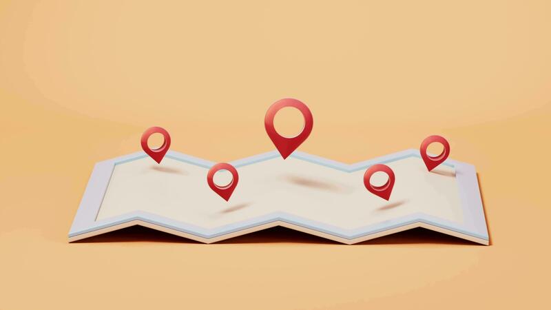 Loop animation of map and location pointer, 3d rendering. Pro Video