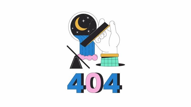 Surreal esoteric 404 error animation. Hand with gutter dropping sphere down error message gif, motion graphic. Waterfall crescent animated cartoon line concept 4K video isolated on white background Pro Video