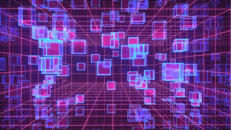 Cyberspace tunnel with geometry cube, 3d rendering. Pro Video