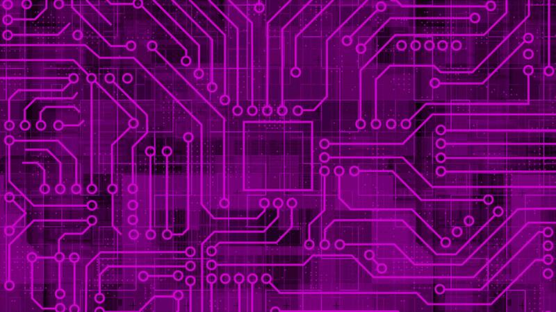 Pink Computer chip with connections and signals. AI Computer processor background. Mother board circuit pattern background Free Video