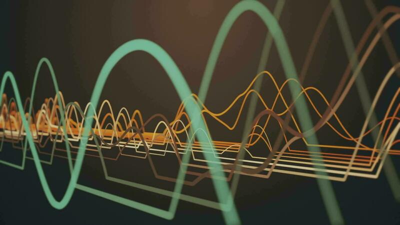 Retro background with particle sine waveforms gently oscillating up and down across the frame. This science oscillation concept motion background is full HD and a seamless loop. Pro Video