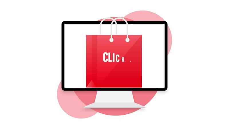 Click collect for marketing design. Store label. Click button. Motion graphics. Pro Video