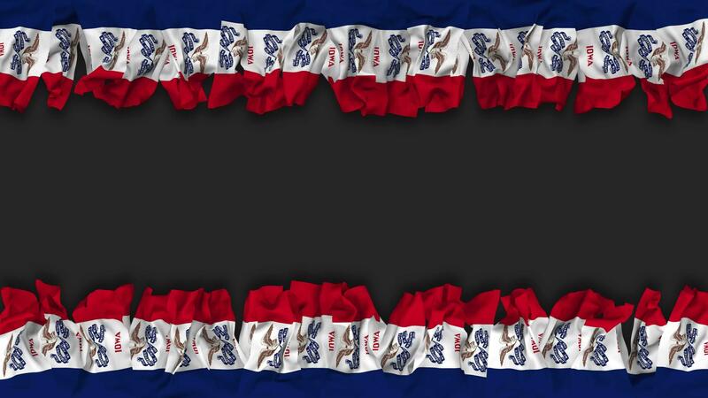State of Iowa Flag Hanging Banner Seamless Looping with Bump and Plain Texture, 3D Rendering, Luma Matte Free Video
