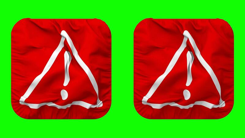 Warning Caution Icon Cloth Seamless Looped Waving in Squire Shape Isolated with Plain and Bump Texture, 3D Rendering, Green Screen, Alpha Matte Free Video