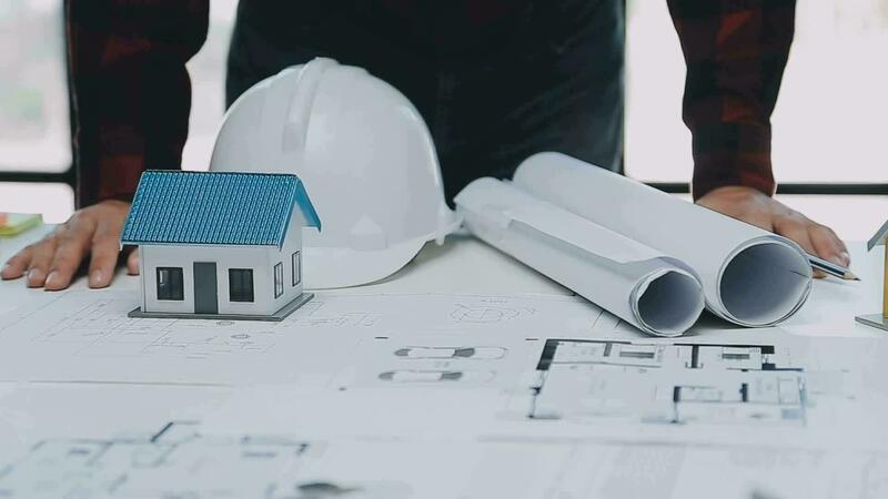 Construction and structure concept of engineer working drawing on blueprint meeting for project working with partner on model building and engineering tools in working site, construction concept. Free Video