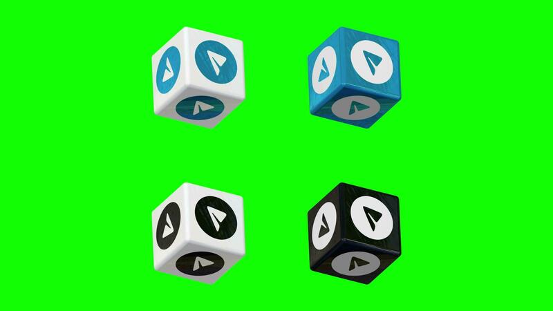 Telegram 3D Cube Rotating in Different Color Combinations, 3D Rendering, Chroma Key, Luma Mate Selection of Cubes