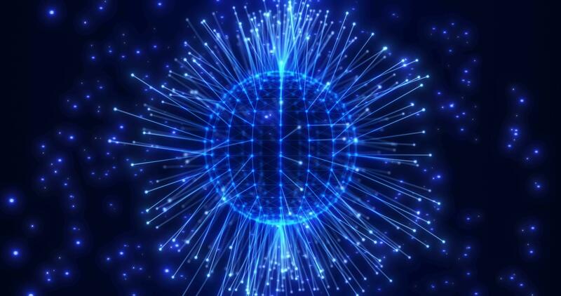 Abstract energy plexus sphere, connection concept, big data visualization, network. Technology background with animation of digital lines and dots. Seamless loop 4k video. Screensaver Pro Video