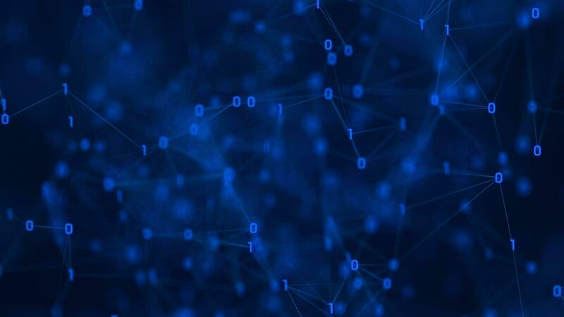 Abstract blue binary code background with glowing ones and zeros connected by a plexus network. This digital data connection technology concept background animation is full HD and a seamless loop. Free Video