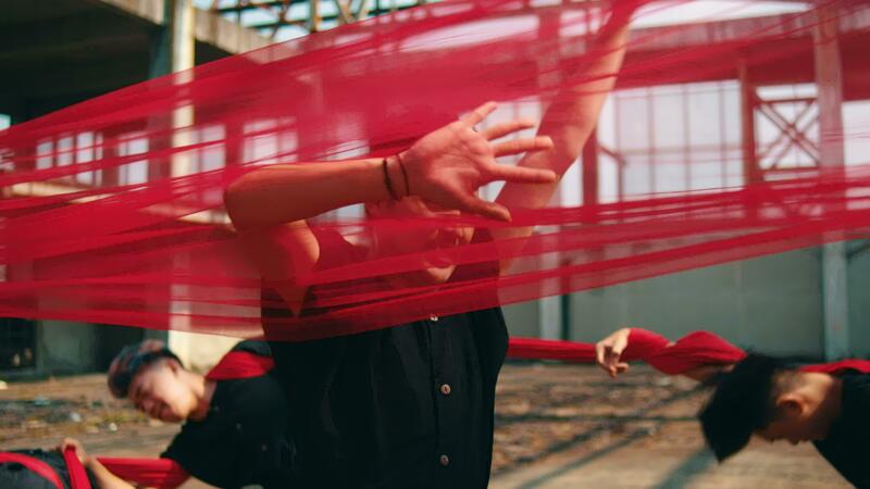 an Asian man trapped in a red net with a pained and angry expression while in an old building Pro Video