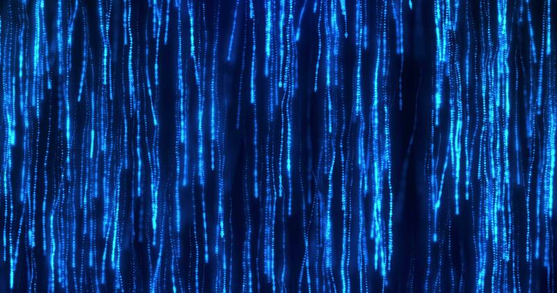 Abstract moving digital particles on a blue futuristic background, cyberspace, big data flow, connection visualization, technological surface from flying particles. Seamless loop Pro Video