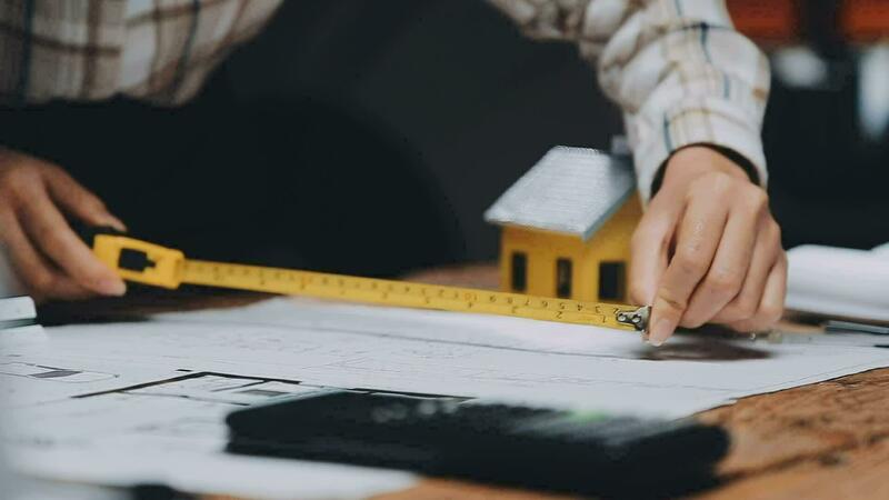 Image of team engineer checks construction blueprints on new project with engineering tools at desk in office. Free Video
