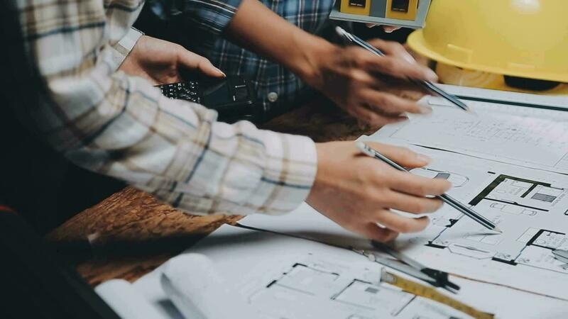 Image of team engineer checks construction blueprints on new project with engineering tools at desk in office. Free Video