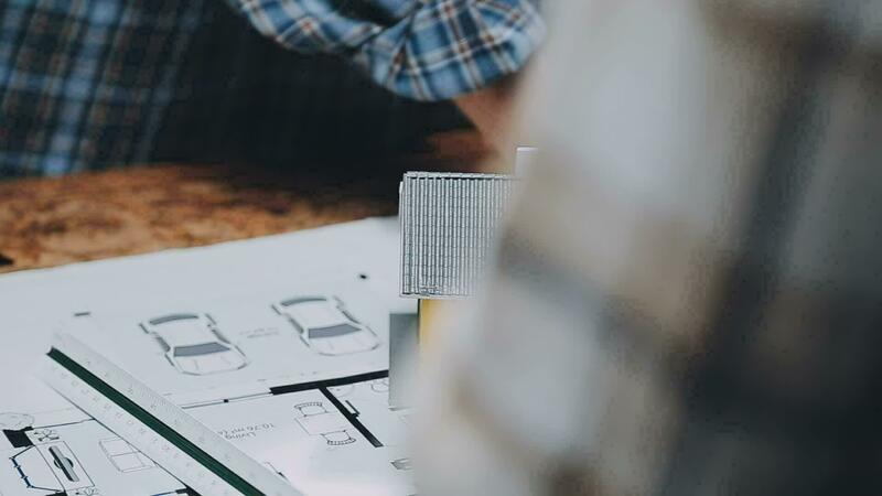 Image of team engineer checks construction blueprints on new project with engineering tools at desk in office. Free Video