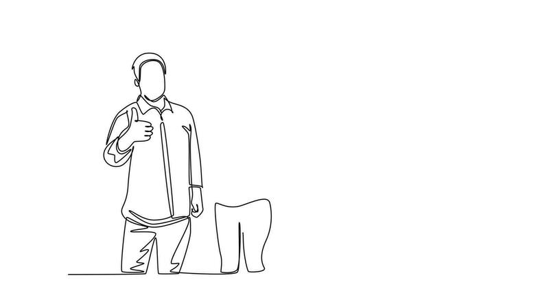 Self drawing animation group of happy college student giving thumbs up gesture after studying together at campus library. Learn and study in university life. Continuous line draw. Full length animated Pro Video