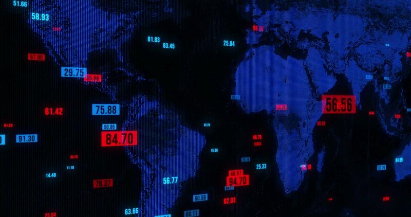 Hi-tech earth map hologram, visualization of connection and big data, binary code. Mobile and Technological Signals. Global Telecommunicati. Communication technology global world network. Pro Video