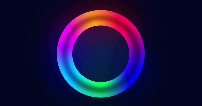 Light animation of a bright neon circle, a multi-colored rotating luminous ring. illumination from neon circle. Modern design. Concept 3D. Seamless loop 4k video Pro Video