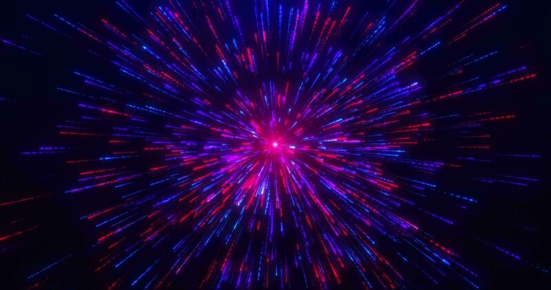 Bright particle explosion, neon fireworks, high speed flight lines, digital lights speed, technology tunnel, neon light movement. space meteor shower scene. Seamless loop 3D animation, 4K Pro Video