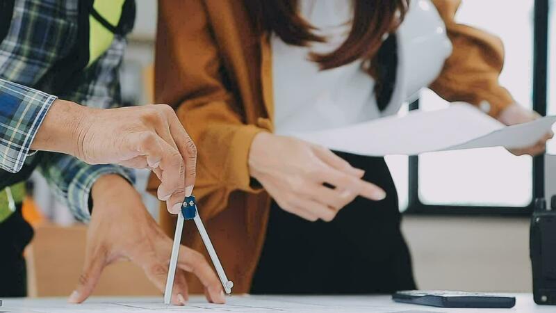 Construction and structure concept of Engineer or architect meeting for project working with partner and engineering tools on model building and blueprint in working site, contract for both companies. Free Video