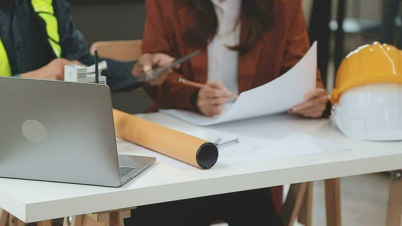 Construction and structure concept of Engineer or architect meeting for project working with partner and engineering tools on model building and blueprint in working site, contract for both companies.