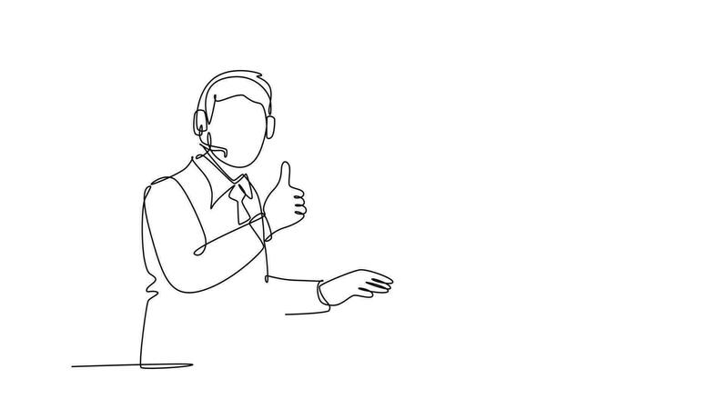 Animated self drawing continuous line draw group of male and female call center worker sitting in front of computer with thumbs up gesture. Customer service business. Full length single line animation Pro Video