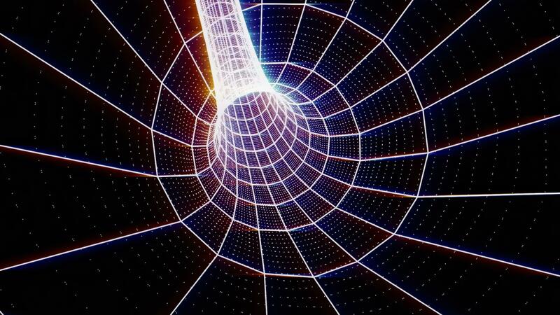 Abstract technological background 3D animation, moving through a futuristic technological or digital cyberspace tunnel corridor or shaft loop. Pro Video