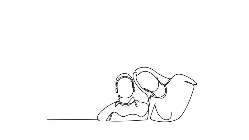 Animated self drawing of continuous line draw group of businessman and businesswoman creating circle and round shape as teamwork symbol. Business team building concept. Full length one line animation Pro Video