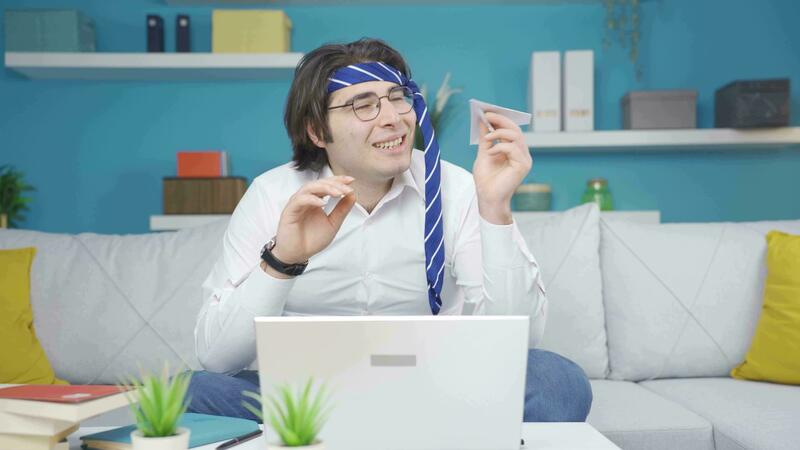 Lazy funny guy doesn't want to do business. He plays with a paper airplane. Pro Video