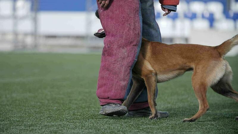 Dog works in a team with its trainer, execution of the command to follow Pro Video