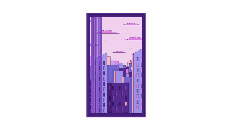 Skyscrapers evening window light blinking line 2D object animation. Cityscape urban scene flat color cartoon 4K video, alpha channel. Afternoon city view window frame animated item on white background Pro Video