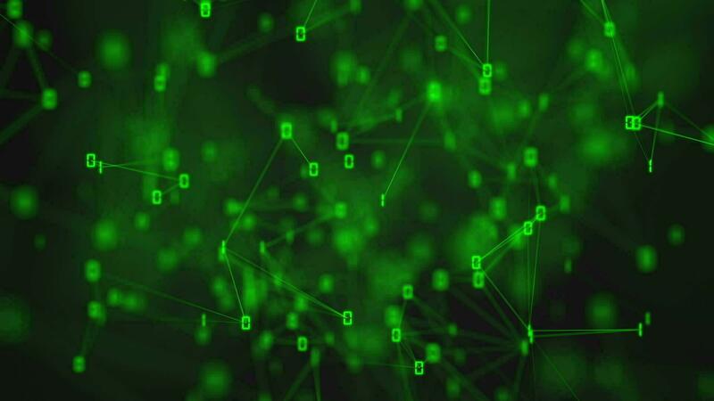 Green binary code background with glowing ones and zeros connected by a plexus network. This digital data connection technology concept background animation is full HD and a seamless loop. Pro Video