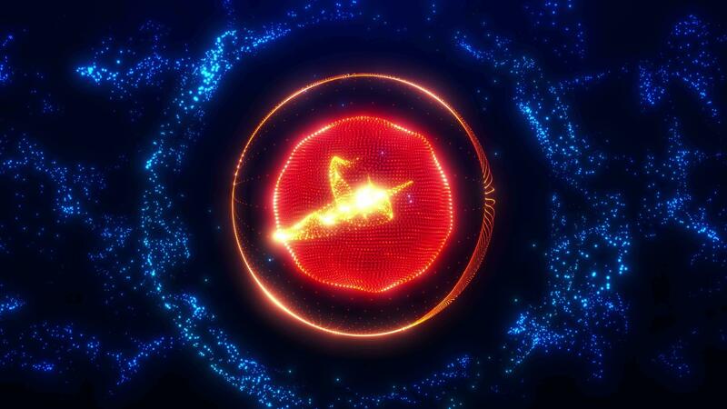 Abstract glowing sphere, energy ball shines brightly with rays of light, magic waves from particles and dots, atomic science abstract background, seamless loop Pro Video