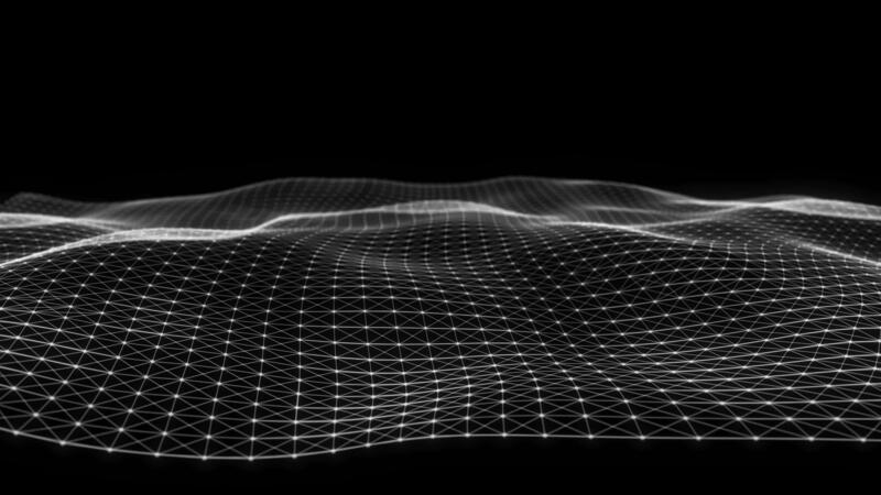 Abstract glowing wave of particles, dots and plexus lines moving on a black background, big data visualization, futuristic and digital background, 3D, 4K Pro Video
