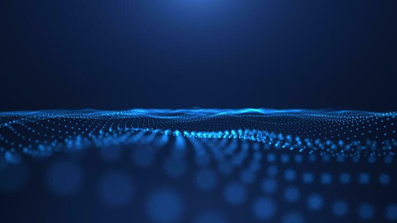 Abstract glowing wave from of particles and dots moves on a blue background, big data visualization, futuristic and digital background, 3D, 4K, seamless loop Pro Video