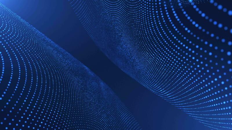 Abstract glowing wave of particles and dots moves on a blue background, The surface of the particle dots is curved. Big data visualization. Artificial intelligence. 3D rendering. Pro Video