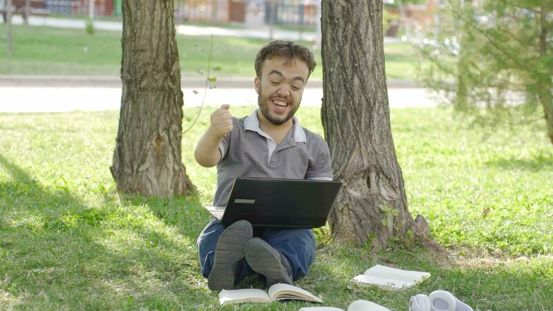 The university dwarf student who is satisfied with the exam results is happy. Pro Video