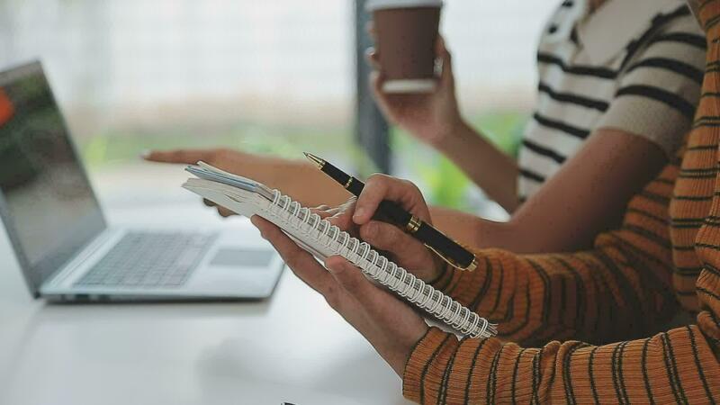 Multiethnic group of happy business people working together, meeting and brainstorming in office using computer, laptop, tablet, and mobile phone. Free Video