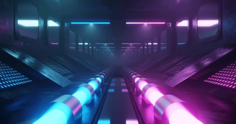 3d rendering seamless loop motion of neon corridor with glowing pipe. Free Video