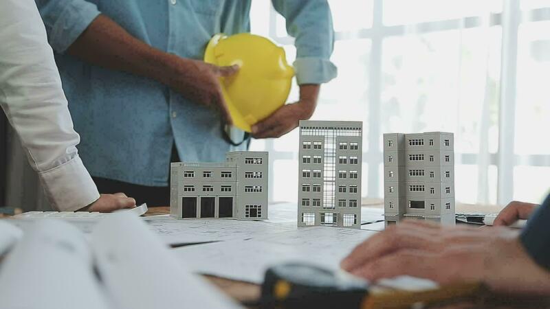 Architectural engineer team meeting Use of blueprints, construction drawings and calculations for architectural projects and engineering tools in the workplace technical structure concept. Free Video