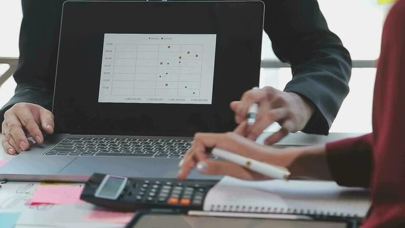 Business team collaboration discussing working analyzing with financial data and marketing growth report graph in team, presentation and brainstorming to strategy planning making profit of company. Free Video