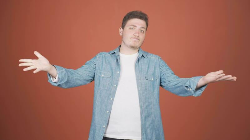 Man looking at camera with a negative expression. Pro Video