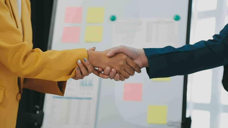 Two creative business people meeting and planning use post it notes sticky note on desk to share idea, Analysis data chart and graph with teamwork strategy brainstorming in office. Free Video