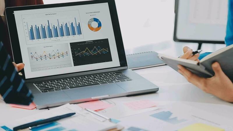 Two creative business people meeting and planning use post it notes sticky note on desk to share idea, Analysis data chart and graph with teamwork strategy brainstorming in office. Free Video