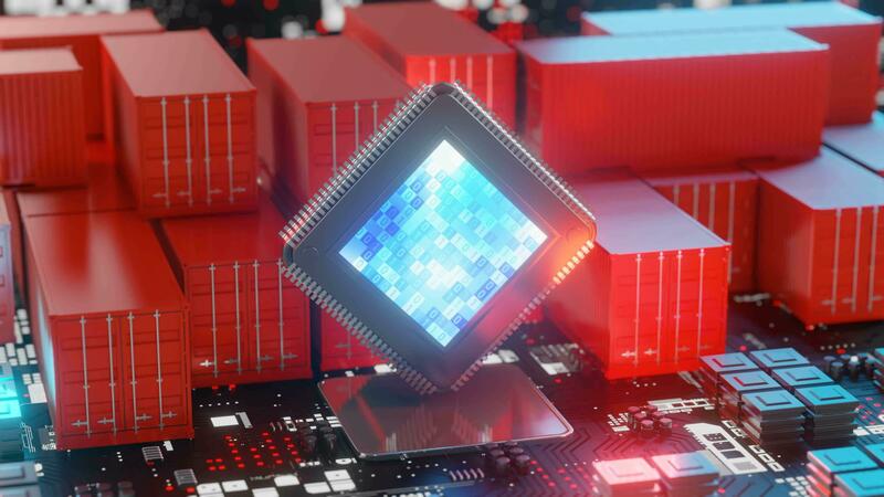 Chipset and container for export import semiconductor, 3d rendering Pro Video