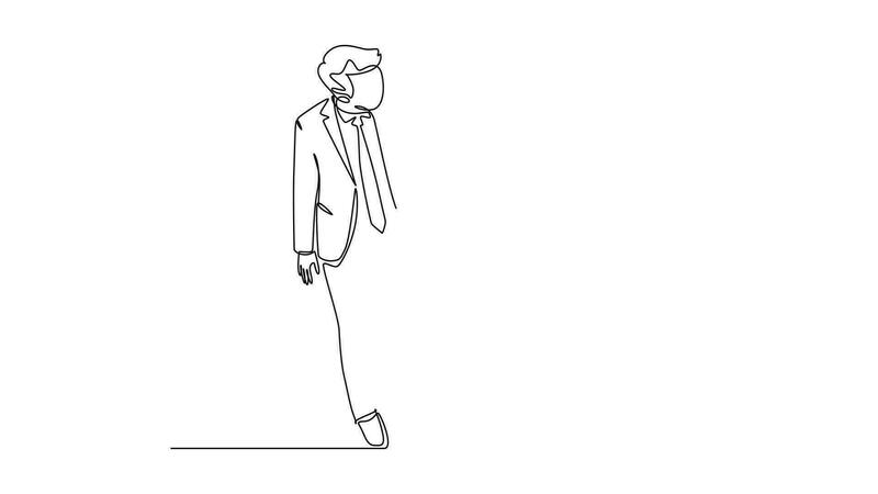 Animated self drawing of continuous line draw two active business colleagues discussing about plan doing project together while walking. Business collaboration concept. Full length one line animation Pro Video