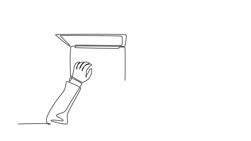 Animated self drawing of continuous line draw hand typing on laptop keyboard and hand signing contract agreement paper together. Big business deal with partner concept. Full length one line animation Pro Video