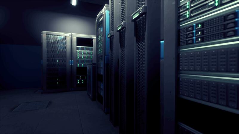 Shot of Corridor in Working Data Center Full of Rack Servers and Supercomputers Pro Video