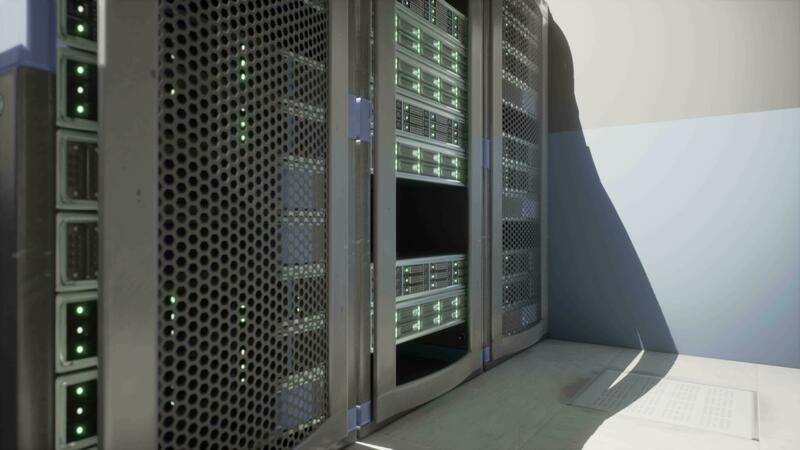 Shot of Corridor in Working Data Center Full of Rack Servers and Supercomputers Pro Video