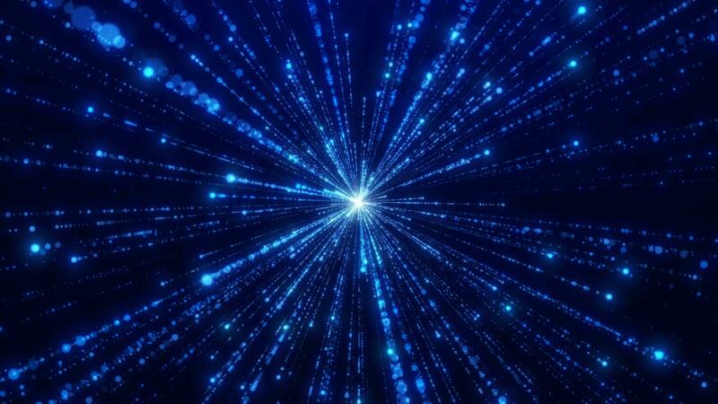 Flying sparkling and shiny particles, falling blue glowing, abstract rain of dots. Particle Explosion. Digital futuristic background. Seamless loop 4k video. Pro Video