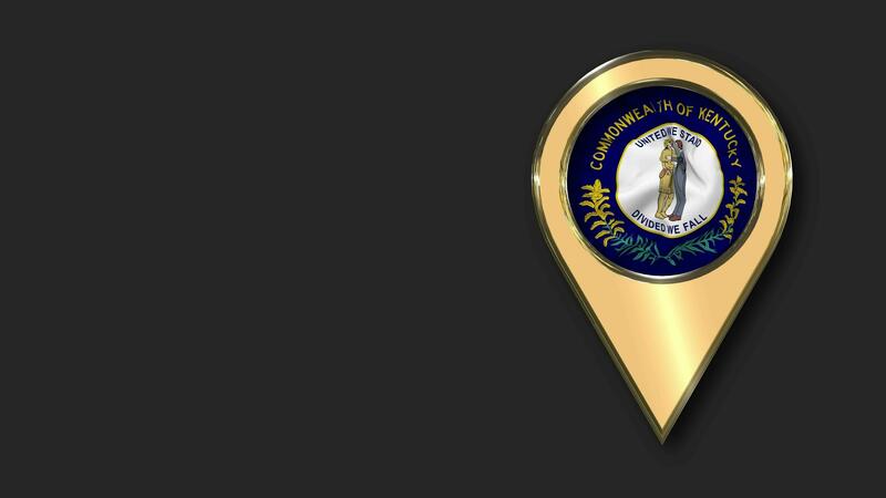 State of Kentucky Gold Location Icon Flag Seamless Looped Waving, Space on Left Side for Design or Information, 3D Rendering Free Video