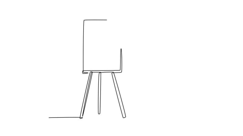 Self drawing animation of single line draw young presenter explaining business strategy during team meeting. Effective training presentation for work office. Continuous line draw. Full length animated Pro Video